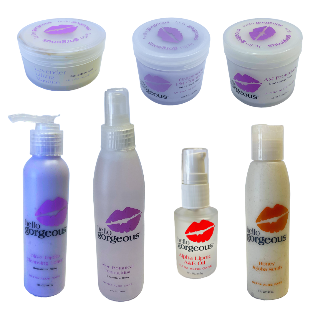 Yes! Our 200% Organic Aloe Vera base is naturally anti-inflammatory, antibacterial, and deeply soothing, making it an excellent choice for those struggling with acne, rosacea, eczema, or irritated skin. Key ingredients like Zinc, Chamomile, Calendula, and Evening Primrose help reduce redness, calm flare-ups, and promote healing, while Hyaluronic Acid and Jojoba Oil keep the skin balanced and hydrated without clogging pores. Whether you’re dealing with breakouts, sensitivity, or dryness, Hello Gorgeous nourishes and restores your skin’s health from the inside out.